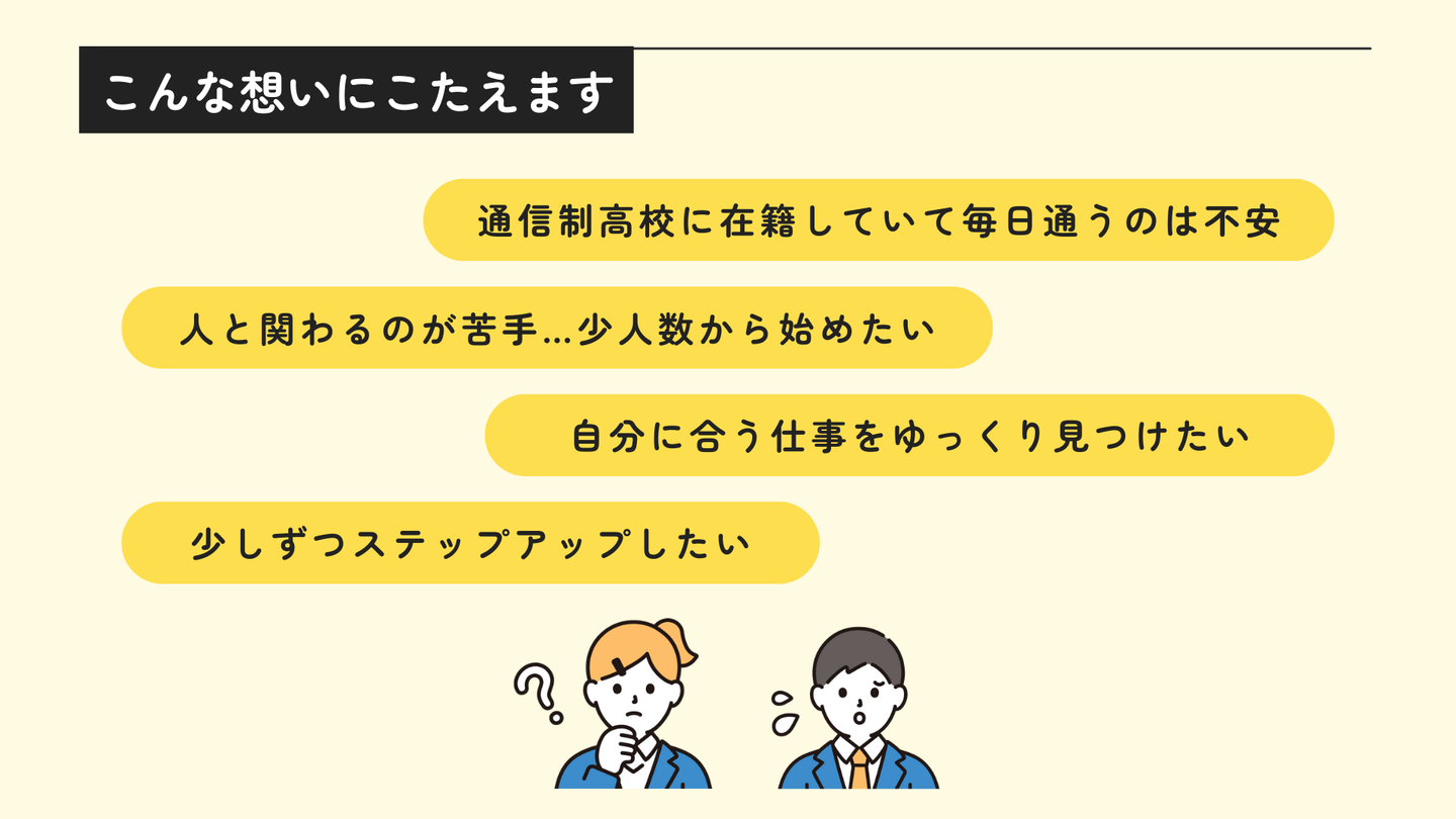 週3日スタートコースは通信制高校に通っていた方や学校が行きづらかった方にもおすすめです。