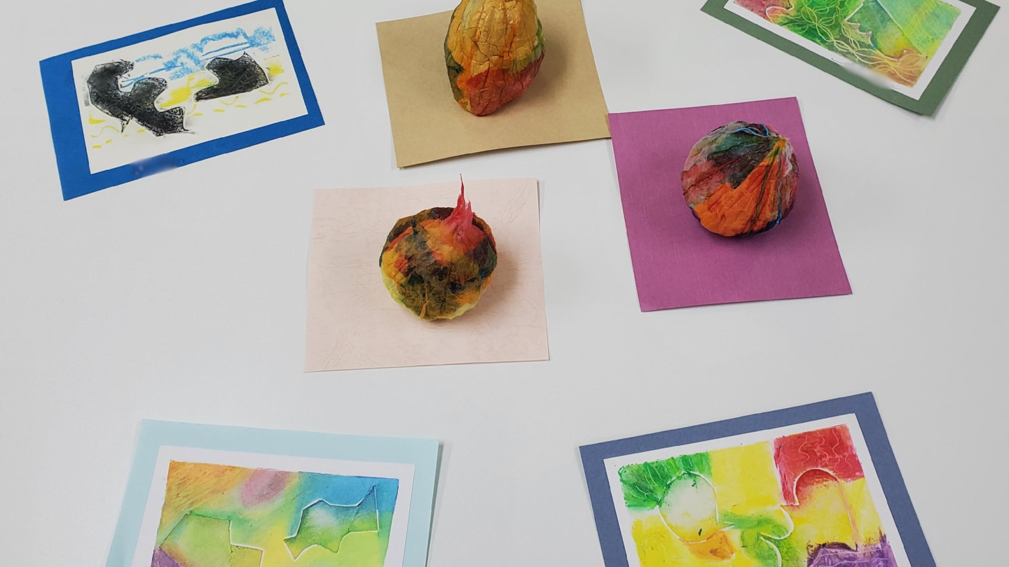作品の完成度や良し悪しを評価するものではなく、最も⼤切にしていることは「創作している時間」。⾔葉では表現しづらい、感情や気持ちを⾊や線で作品でかたちにします。作品は皆で共有し、お互いが「いいね」と言葉をかけ合い、⾃分を知るきっかけにもなります。