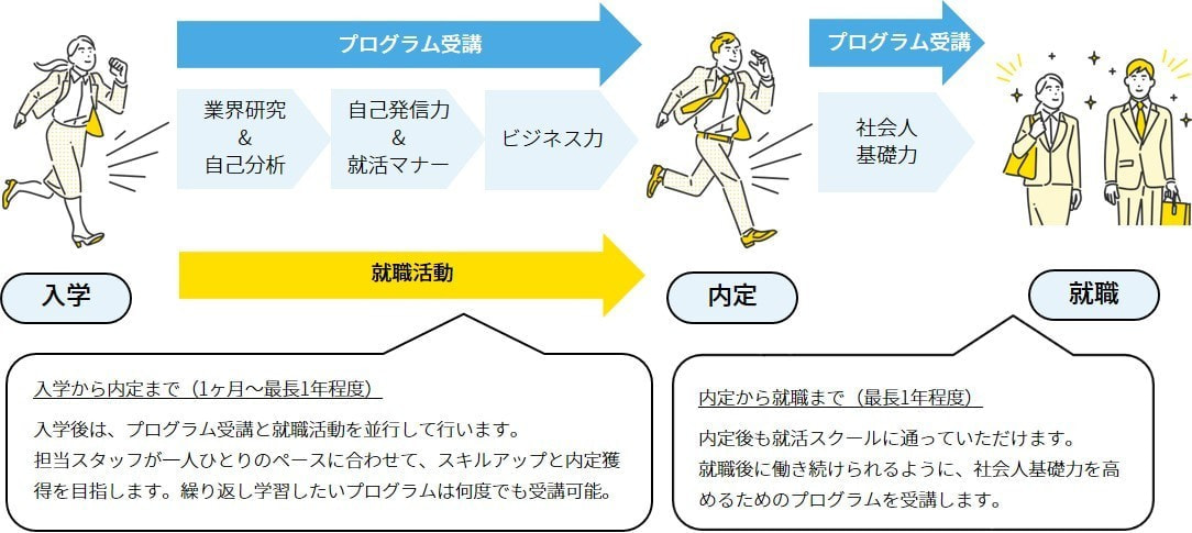 長期間で学びながら、一人ひとりに合わせた就職を目指します。