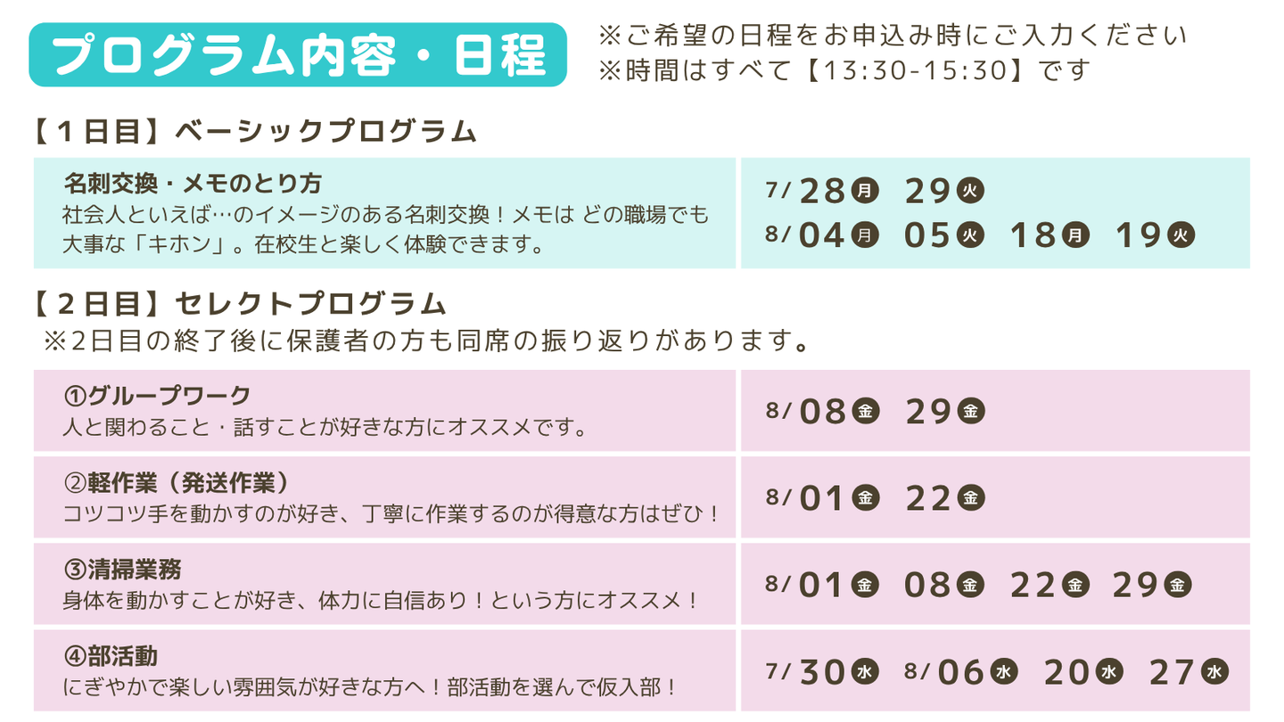 2025夏 体験入学(2日間)